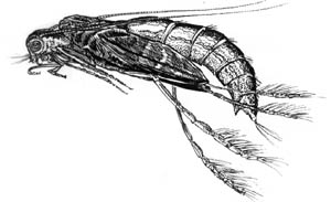 surface are caddisflies. Larvae are identified by their cases. Pupae